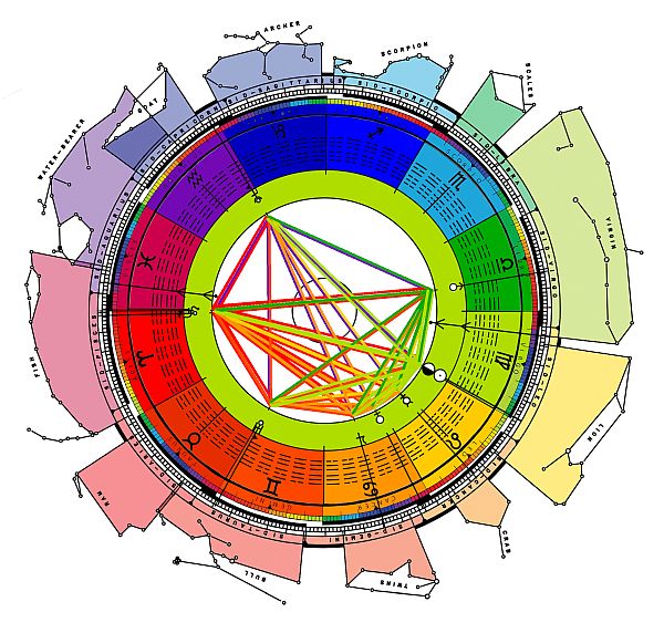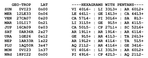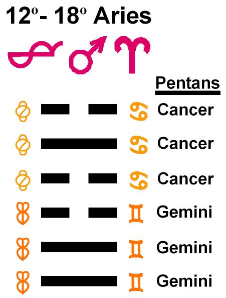 These symbols come from a degree of the zodiac and a line of the I Ching hexagrams.