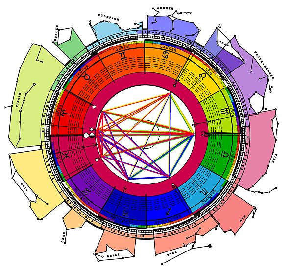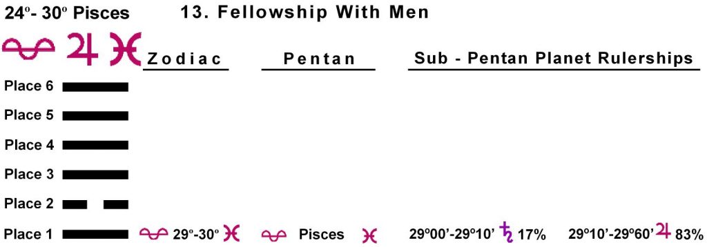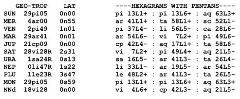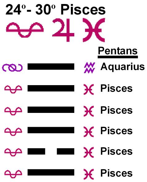 These symbols come from a degree of the zodiac and a line of the I Ching hexagrams.