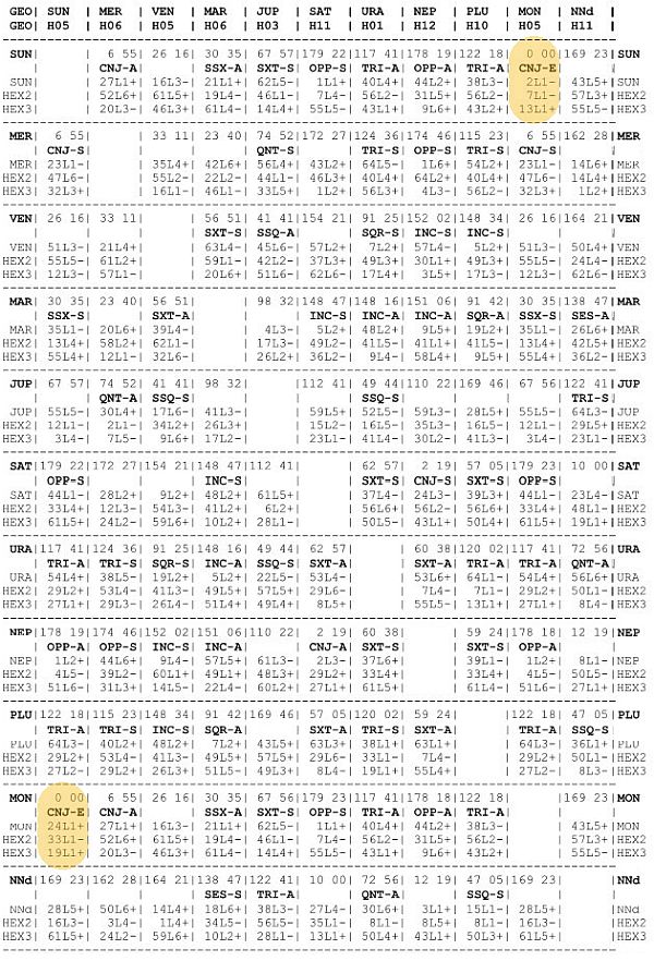 All of the symbols in this newsletter refer to the  moment of the New Moon.