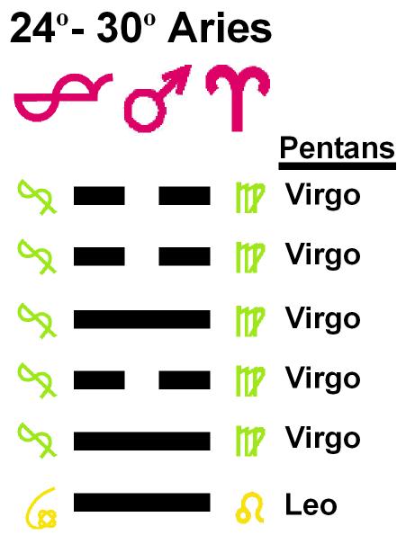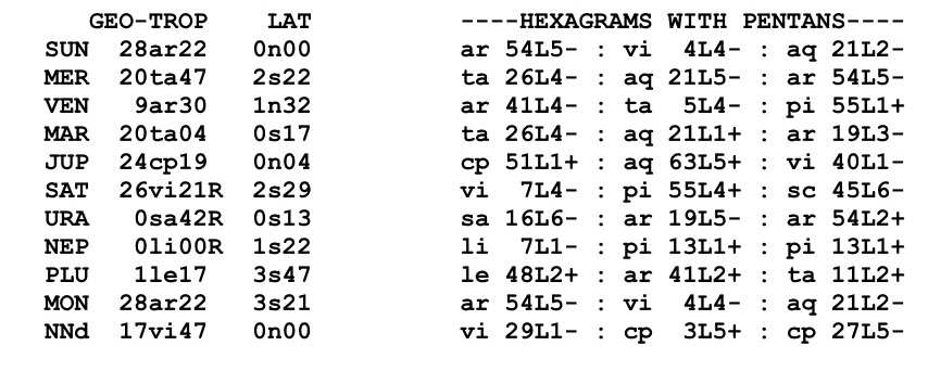 These symbols come from a degree of the zodiac and a line of the I Ching hexagrams.