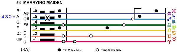This hexagram reveals the drum rhythm by degree. Play this on your own or in a drum circle for the New Moon. Tune into the seed moment of the month. The Base at the red dot should be played louder!