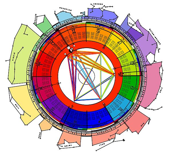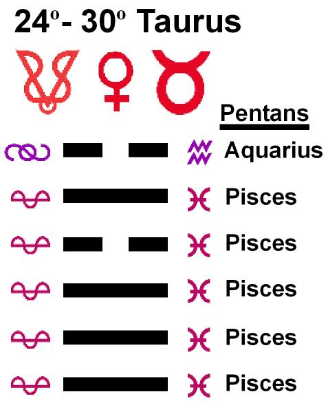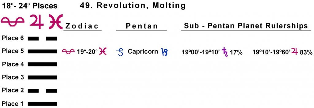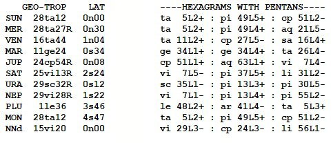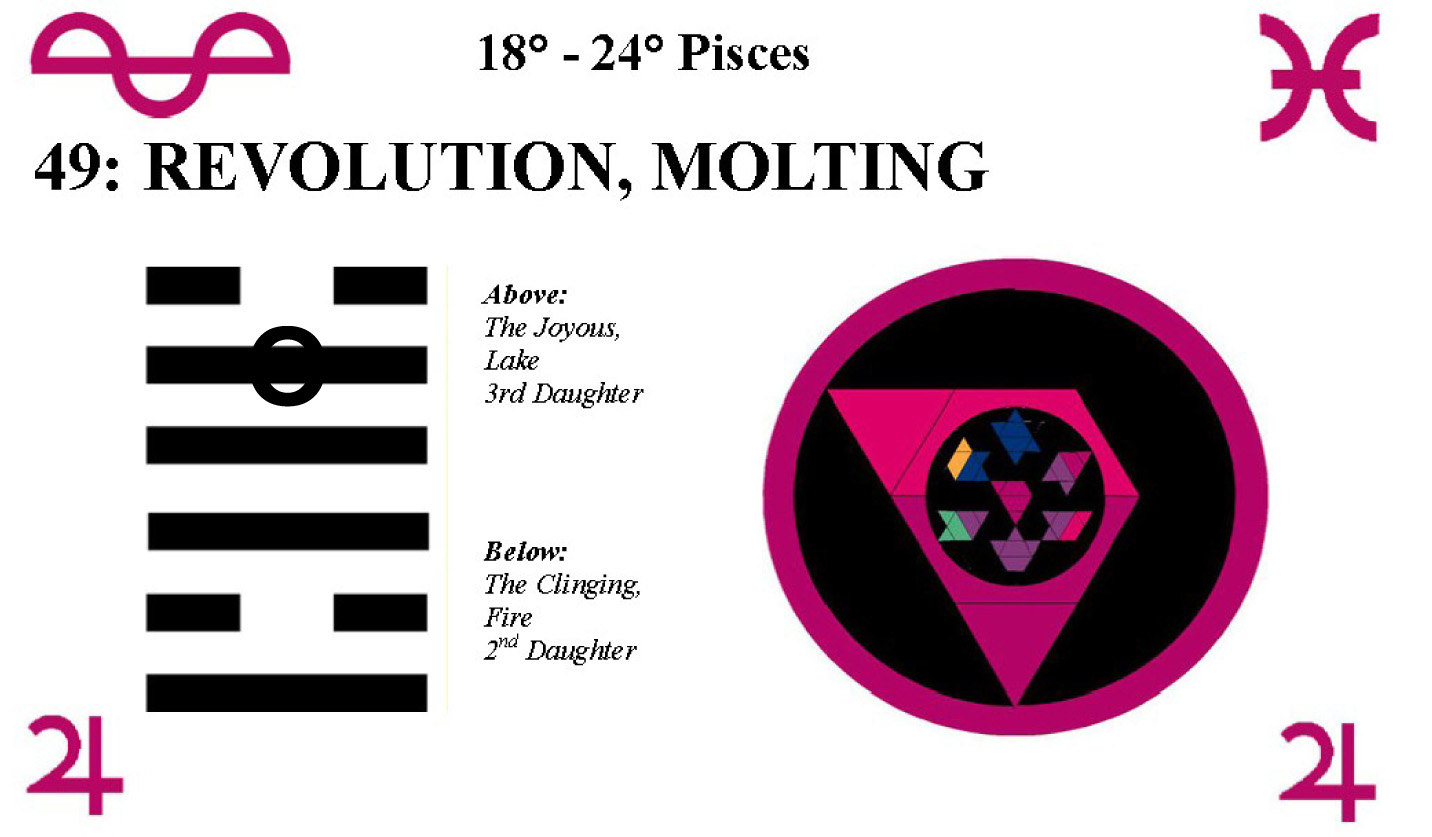 These symbols come from a degree of the zodiac and a line of the I Ching hexagrams.