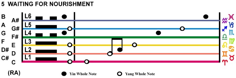 This hexagram reveals the drum rhythm by degree. Play this on your own or in a drum circle for the New Moon. Tune into the seed moment of the month. The Base at the red dot should be played louder!