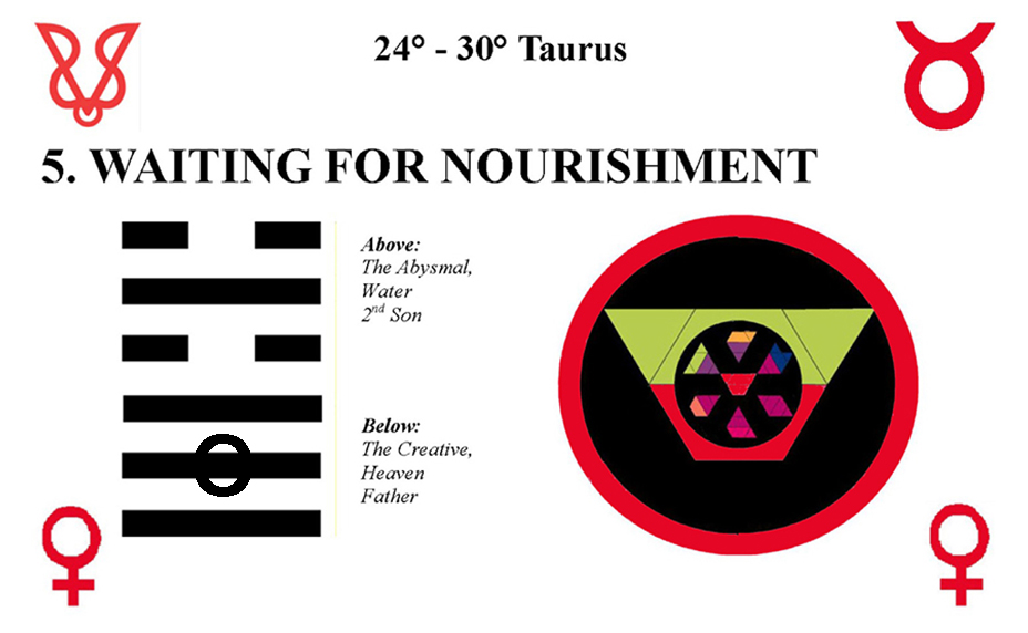 Two trigrams meet in Taurus. They are The Joyous and The Creative; pleasure and freedom. There is a need to enjoy oneself and increase personal creative expression.