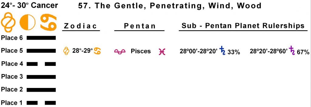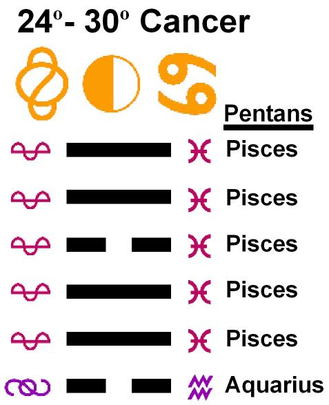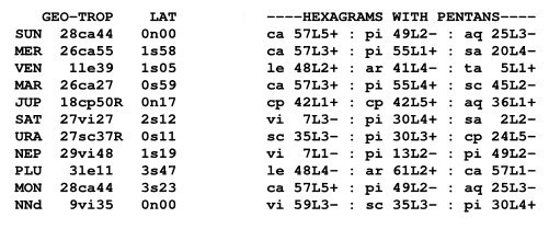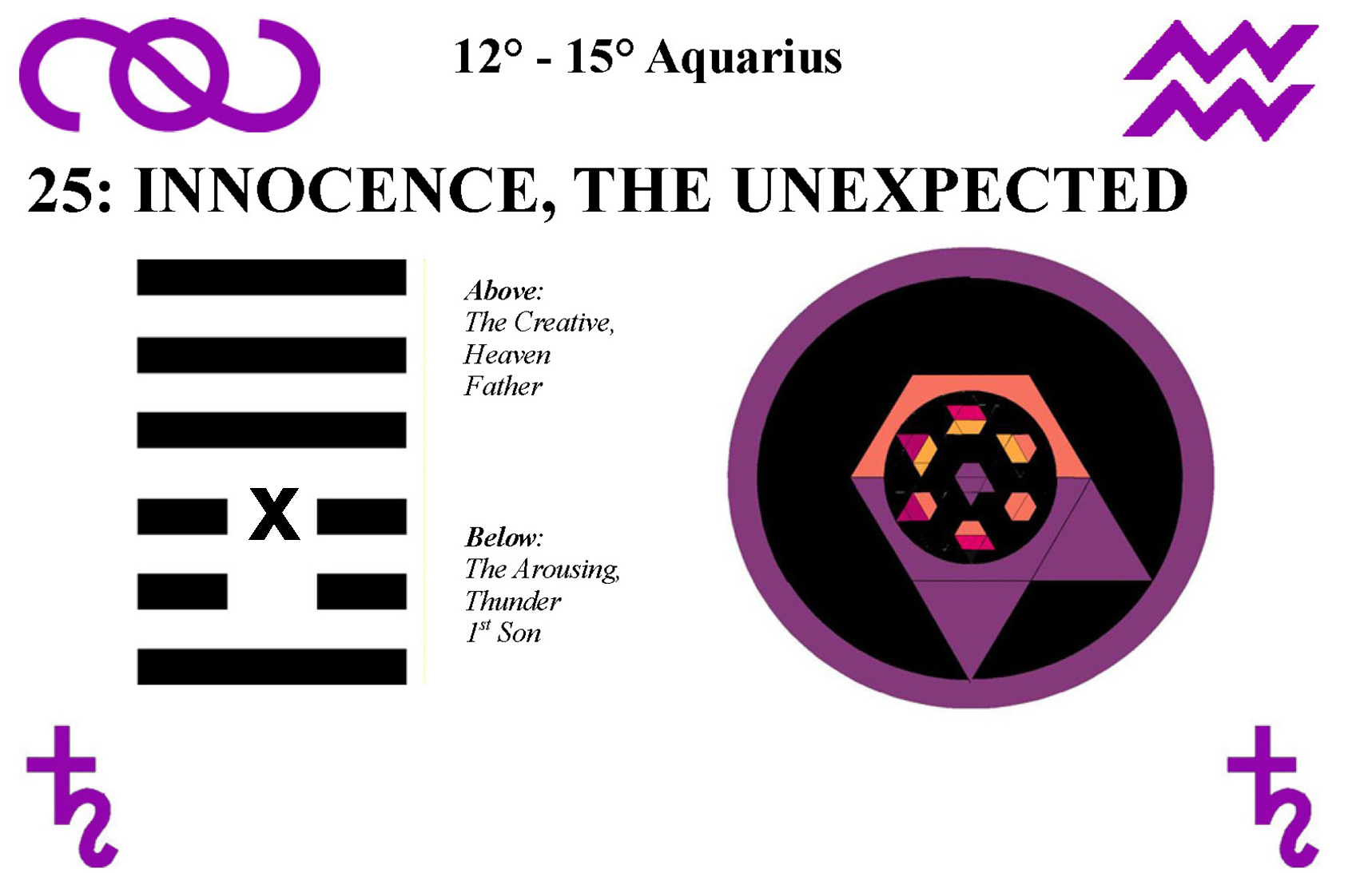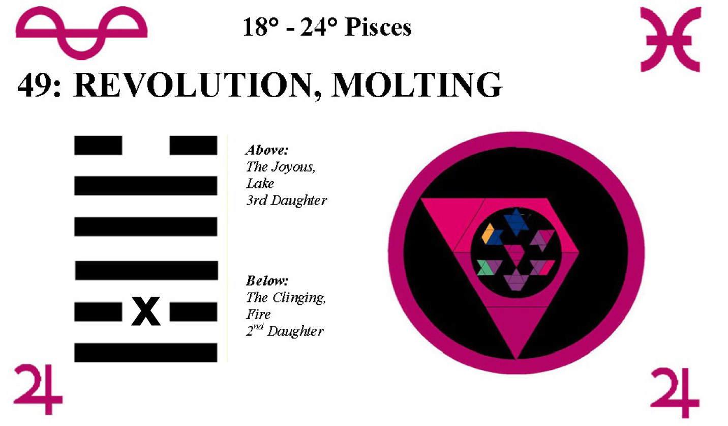 These symbols come from a degree of the zodiac and a line of the I Ching hexagrams.