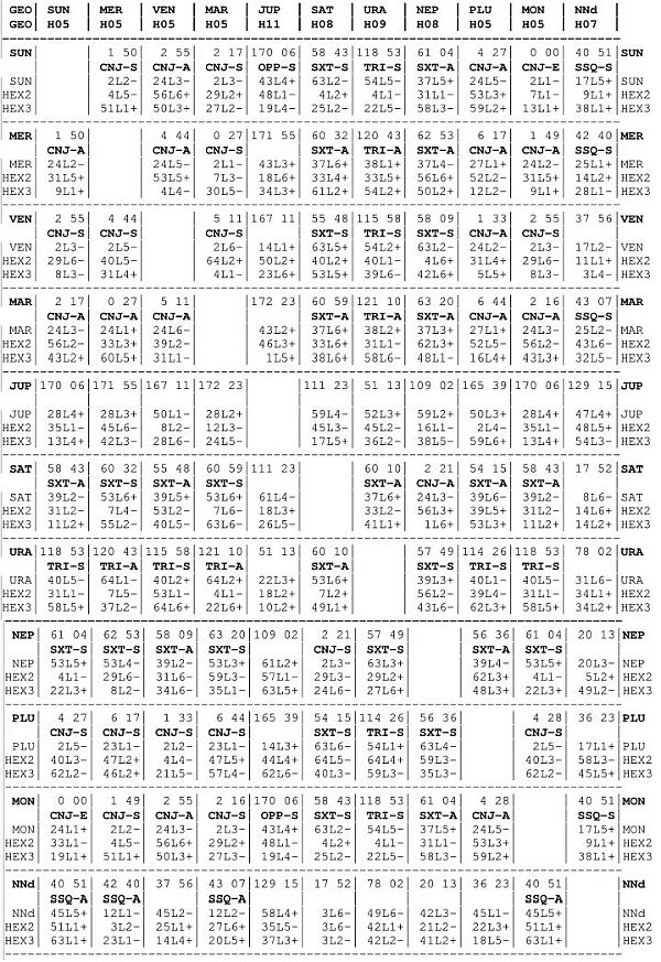 A similar compilation of symbols can be done for the position of each planet or sensitive point in a horoscope.