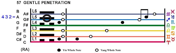 This hexagram reveals the drum rhythm by degree. Play this on your own or in a drum circle for the New Moon. Tune into the seed moment of the month. The Base at the red dot should be played louder!