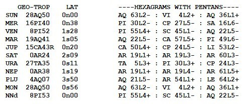 These symbols come from a degree of the zodiac and a line of the I Ching hexagrams.