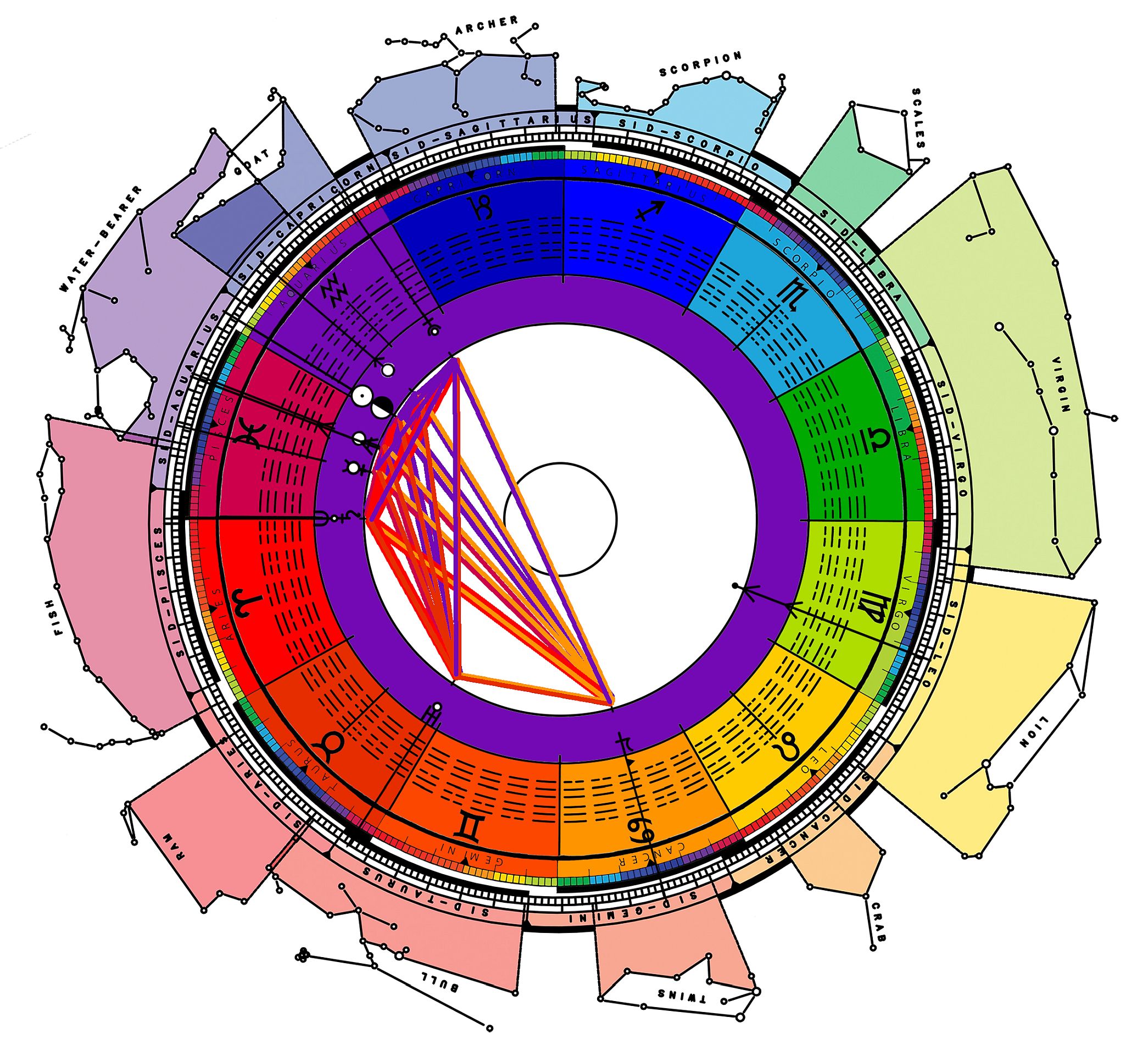 Most computer printouts will draw the horoscope with the houses as appropriate for where you are on the planet. This was not done here in order to focus on things valid for everyone on the planet.