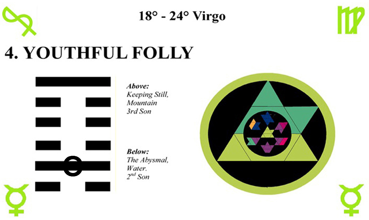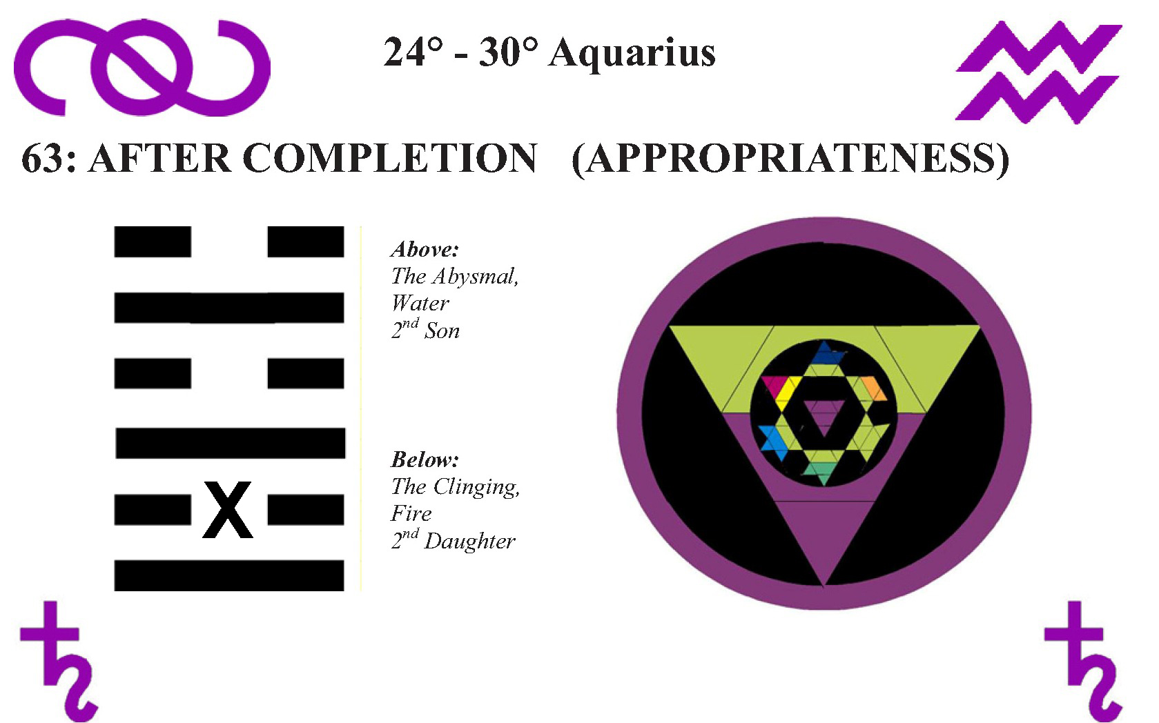 These symbols come from a degree of the zodiac and a line of the I Ching hexagrams.