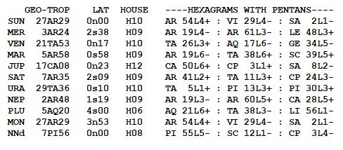 These symbols come from a degree of the zodiac and a line of the I Ching hexagrams.