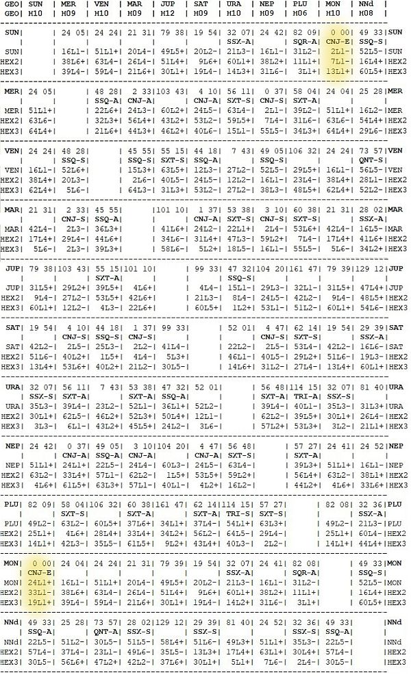 All of the symbols in this newsletter refer to the moment of the New Moon.