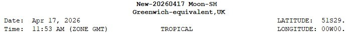 The Horoscope for the New Moon is for the exact moment of the New Moon.