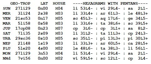 A similar compilation of symbols can be done for the position of each planet or sensitive point in a horoscope.