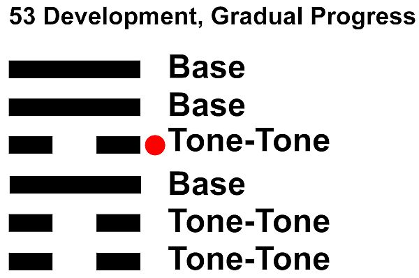 This hexagram reveals the drum rhythm by degree. Play this on your own or in a drum circle for the New Moon. Tune into the seed moment of the month. The Base at the red dot should be played louder!