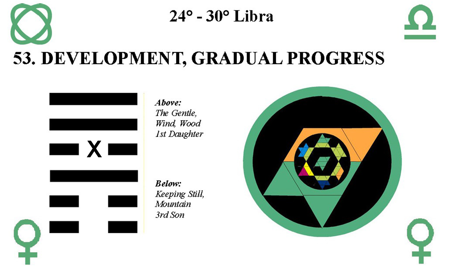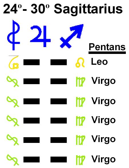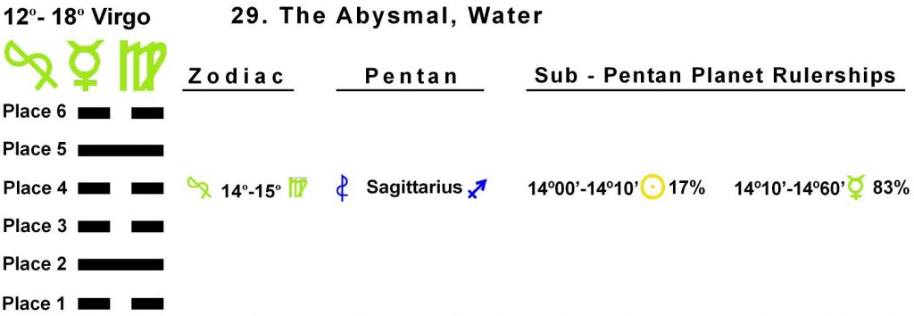 These symbols come from a degree of the zodiac and a line of the I Ching hexagrams.